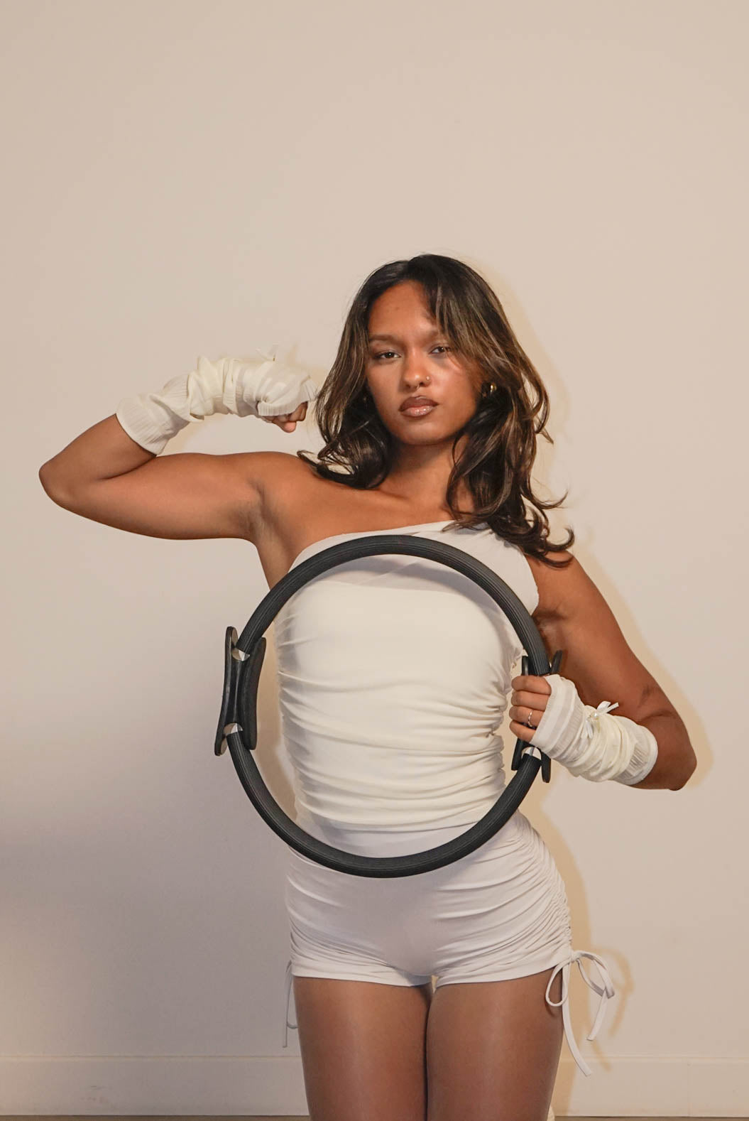 The Melon Miel Pilates Camisole from Clara in Paris is the ultimate Pilates top for women who embody sensual strength and Parisian elegance. Designed for Pilates girls who flow between the studio and the city, this sculpting top blends comfort, control, and coquette femininity. Its sheer draped shoulder, corset-inspired fit, and luxe soft-touch fabric create an effortlessly chic Pilates outfit made to be worn from mat to midnight.